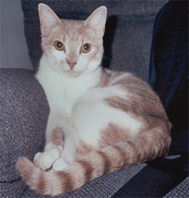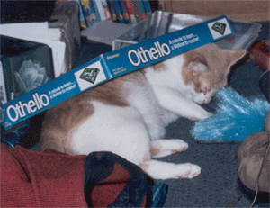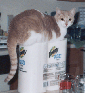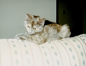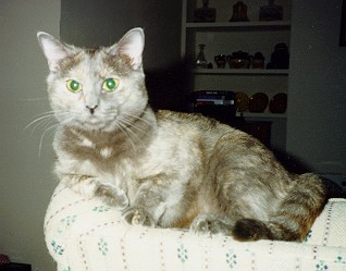 Tigger, being silly. She loves to burrow into blankets or piles of clothes. This is her "hiding" under a throw on our couch.